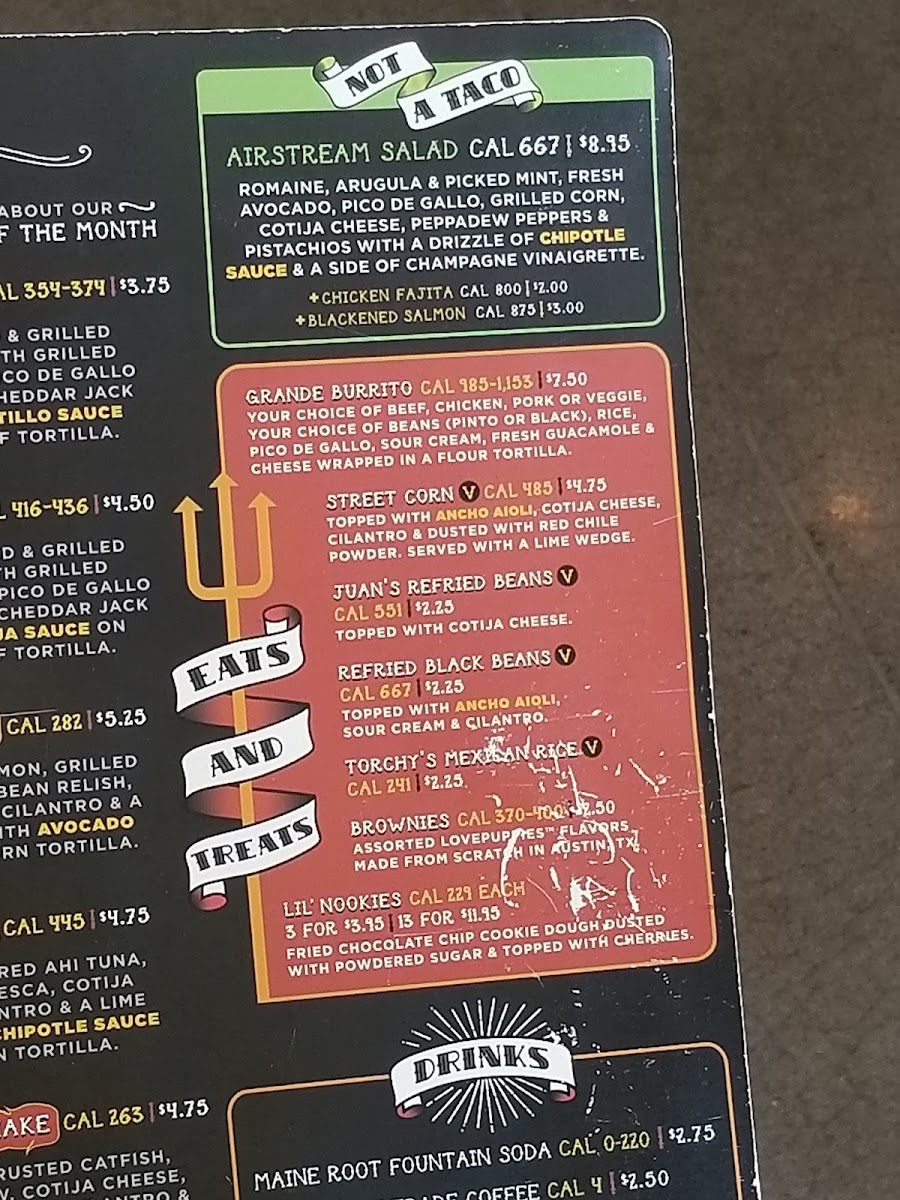 1 Trailer Park Taco — Fried chicken, green chiles, lettuce, pico de gallo, mixed cheese with poblano sauce on a flour tortilla. 1/2 size Chips and Queso. 1 Regular fountain drink.